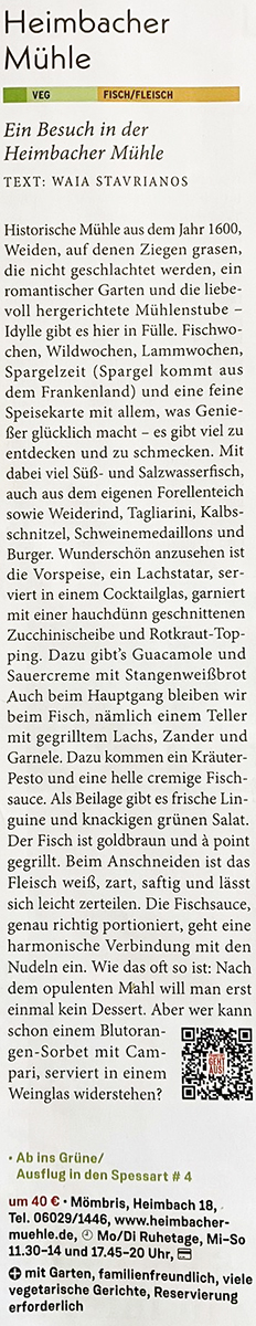Saisonale und regionale Köstlichkeiten gespickt mit dem urgemütlichen Charme der Heimbacher Mühle warten auf Sie.